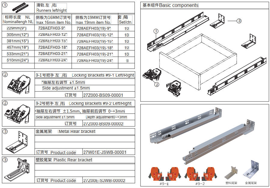 Soft Closing Full Extension Undermount Slide US Frame Version With 3D Locking Brackets