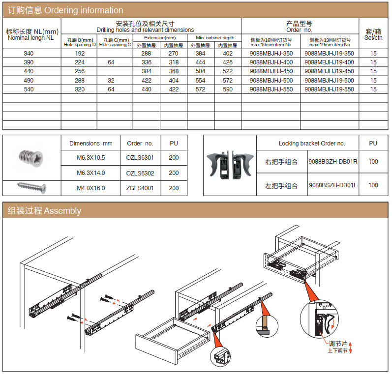 Soft Closing 7/8 Extension Undermount Slide With Locking Brackets