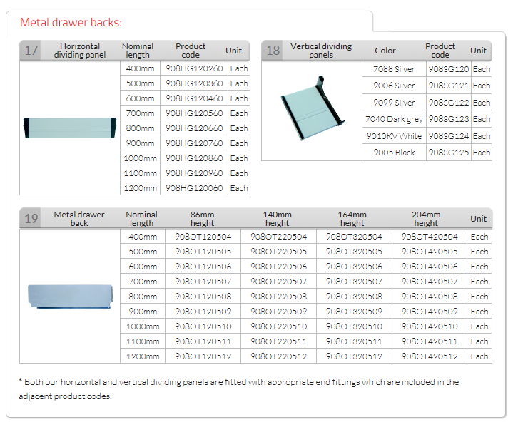 908SH Horizontal & Vertical Dividing Panels & Metal Drawer Backs