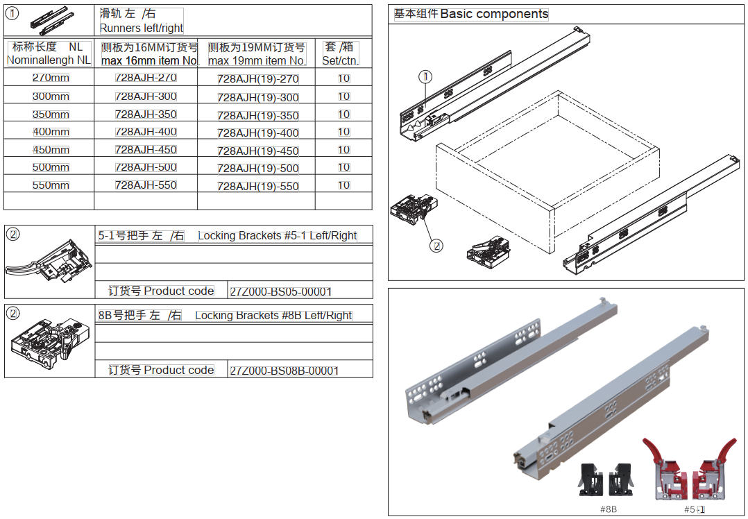 > 更轻柔,更静音,更顺滑,自动关闭系统 > 抽屉可快速安装、拆卸,无需工具 > 抽屉高度调节0~+3mm > 载重35KG